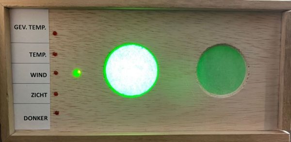 Als het veilig is om te roeien, brandt het groene licht en als dat niet zo is, dan brandt het rode licht. Als je niet mag roeien kun je aan de kleine LED lampjes zien waarom niet: vanwege de gevoelstemperatuur, de temperatuur, de wind, het zicht of omdat het donker is. De grenzen zijn gelijk aan de grenzen bij het stoplicht op de website. Een uur na zonsondergang tot een uur voor zonsopgang zijn de grote lampen uit en brandt alleen de middelste LED. Als er problemen zijn met wifi of bereikbaarheid van de website waar de informatie vandaan komt, dan gaan de grote lampen uit en kleurt de middelste LED blauw.