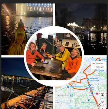 Een roeitocht door de grachten van Amsterdam. Met 15 roeicollega’s van RV Iris hebben we, verdeeld in 3 teams, hieraan meegedaan. Elk team kreeg een C4 toegewezen waar we de uitdagende tocht mee konden roeien.