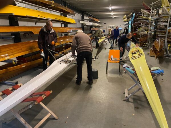 Na het schoonmaken kregen ze een mooie waslaag, zodat ze straks op 1 april weer soepel door het water glijden. Het resultaat mag er zijn: een rij glanzende skiff’s, klaar voor de winterrust. En het mooiste? Naast de klus was het ook een gezellige ochtend samen. Over vier maanden gaat het seizoen weer van start. De skiff’s zijn er klaar voor!